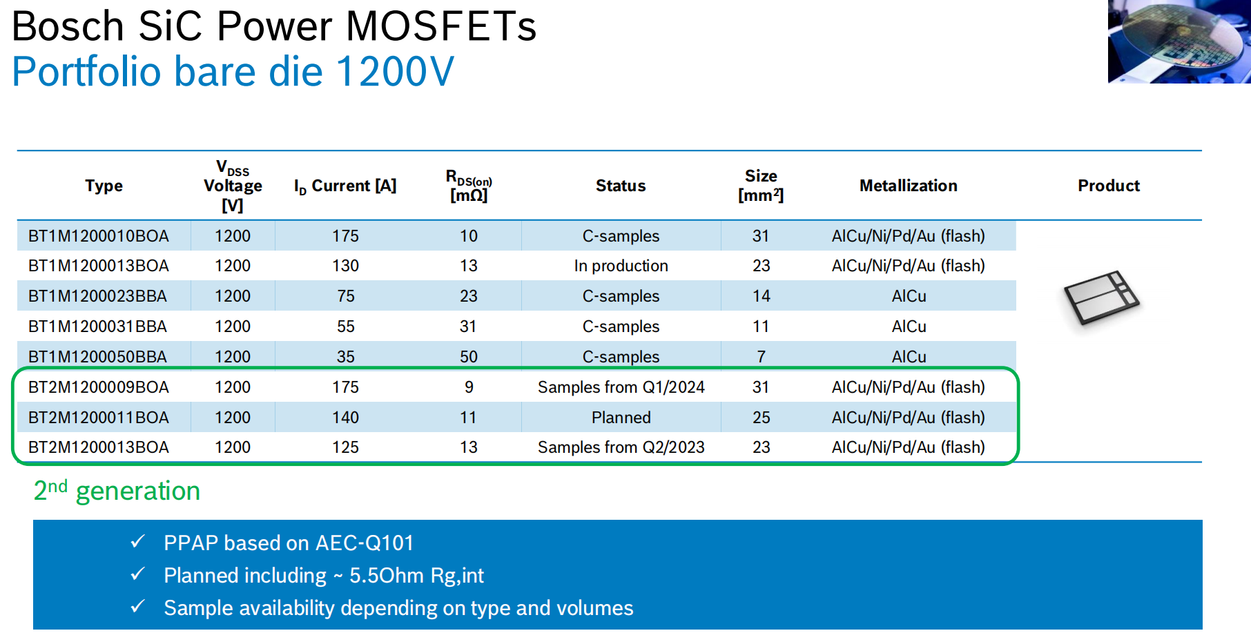 - 6mΩ@27mm2型号已量产并上车。
