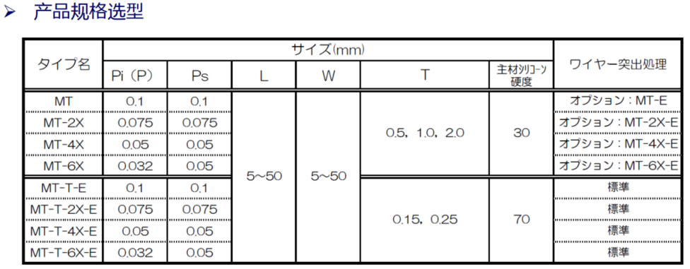• 提供密度更高的金属细线类型,具有低负荷和良好接触性的类型,适用于设备的小型化和高