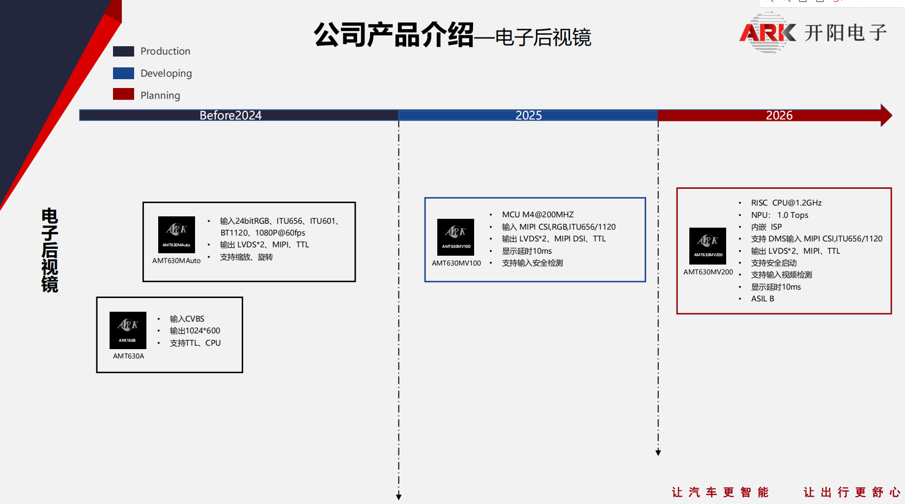 开阳行车记录仪芯片用于高清行车记录仪、流媒体后视镜等产品;具有高清图像处理、夜视增强、降噪去雾等特点;通过AEC-Q100认证,满足车载规格要求。