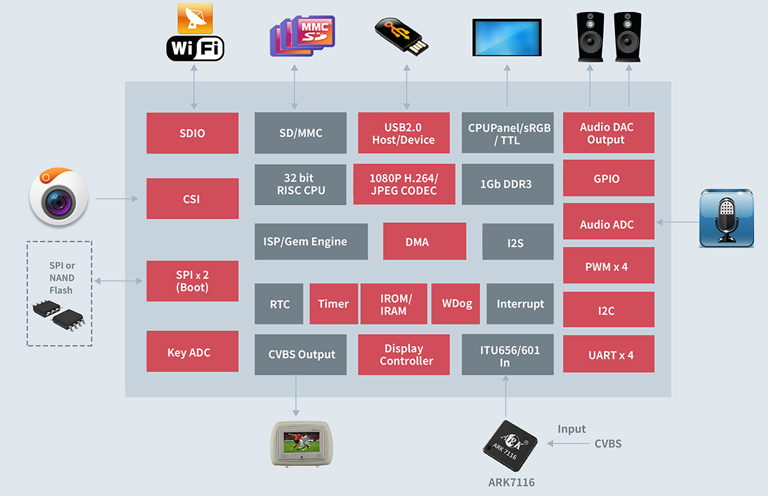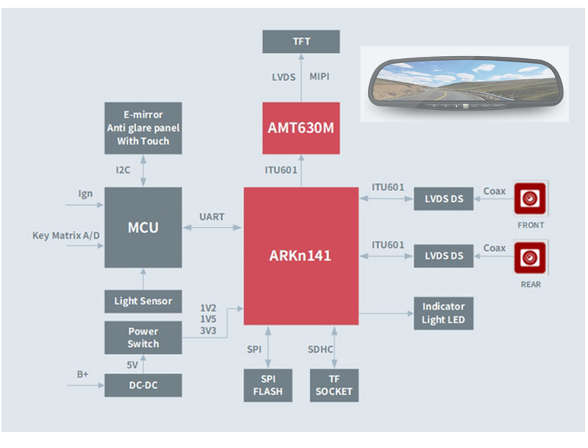 ARKn141专为汽车辅助应用而设计,聚焦行车记录及车载监控系统。芯片集成32位RISC CPU、内嵌1Gbit DDR3 ,采用RTOS操作系统或Linux操作系统,在ISP处理方面独具优势,通过AEC-Q100认证。